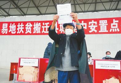 走上抽簽臺(tái)、抽取房號(hào)、按下手印……簡(jiǎn)單幾個(gè)步驟后,昭覺(jué)縣77歲的特殊困難戶(hù)色七古博,拿到了易地扶貧搬遷縣城集中安置點(diǎn)的新房房號(hào)。