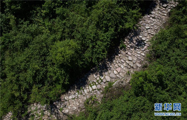 俯瞰大相嶺茶馬古道中修復(fù)完成的一段(無(wú)人機(jī)照片,5月25日攝)。新華社記者江宏景攝