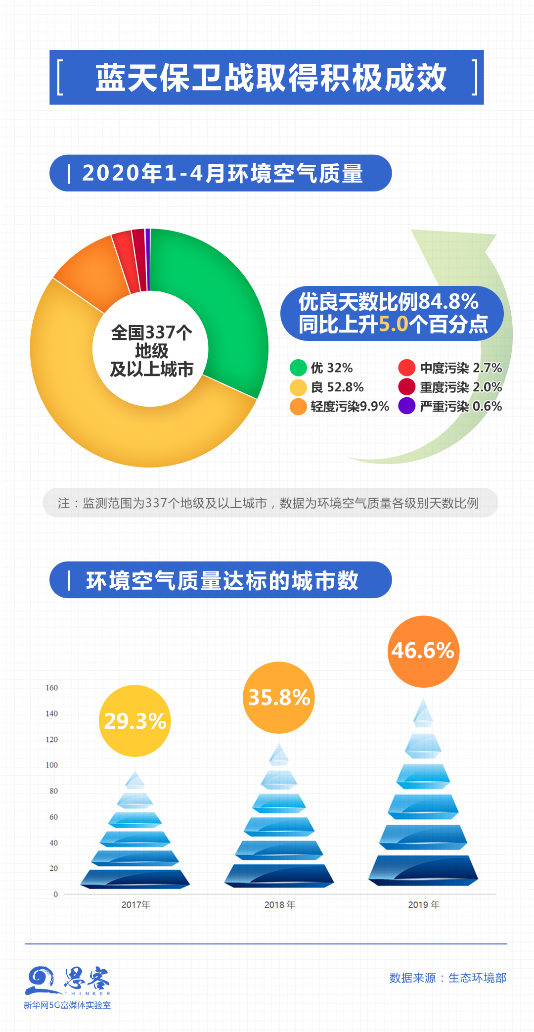 從2020年1-4月數(shù)據(jù)看,全國337個(gè)地級(jí)及以上城市在平均優(yōu)良天數(shù)、達(dá)標(biāo)率以及PM2.5 年均濃度三大指標(biāo)上均比上年同期有所改善。