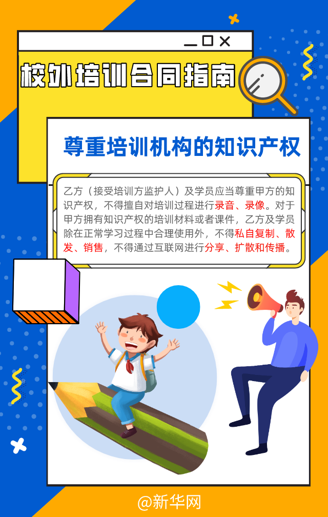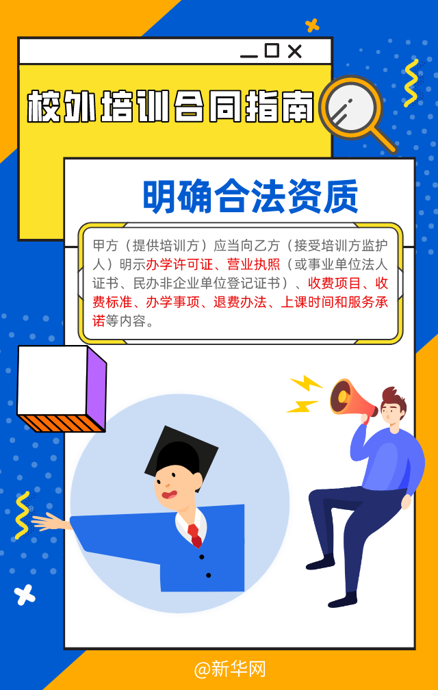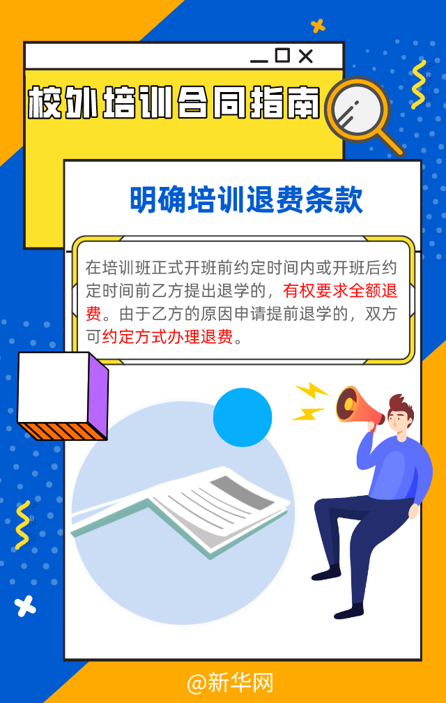 長期以來,校外培訓(xùn)機(jī)構(gòu)的資質(zhì)問題,以及部分培訓(xùn)機(jī)構(gòu)存在違規(guī)收費(fèi)、退費(fèi)難、卷款“跑路”現(xiàn)象,這些令學(xué)生和家長發(fā)愁。教育部、市場(chǎng)監(jiān)管總局近日發(fā)布《中小學(xué)生校外培訓(xùn)服務(wù)合同(示范文本)》,供培訓(xùn)者(學(xué)員)監(jiān)護(hù)人與開展中小學(xué)生校外培訓(xùn)的培訓(xùn)機(jī)構(gòu)簽訂培訓(xùn)合同時(shí)參照使用,為規(guī)范校外培訓(xùn)做出新的探索。一起來看看,這份“國家版”標(biāo)準(zhǔn)合同有哪些亮點(diǎn)?