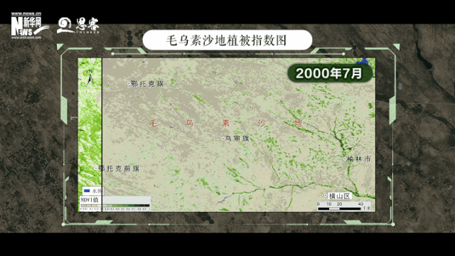 ▲毛烏素沙地2000年7月與2019年7月植被指數(shù)對(duì)比圖