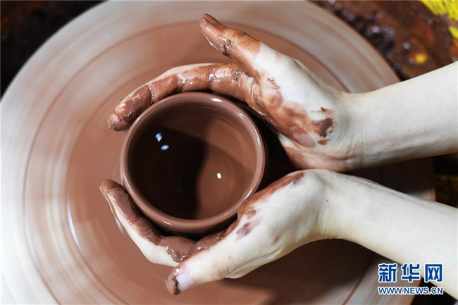 6月27日,游客在安陶小鎮(zhèn)體驗(yàn)“榮昌陶”制作。新華社記者 王全超 攝