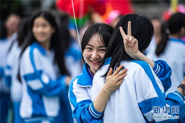 6月27日,烏當(dāng)中學(xué)高三學(xué)生在畢業(yè)典禮上和同學(xué)擁抱。 新華社記者 陶亮 攝