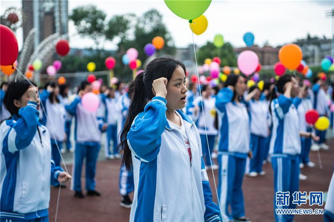 6月27日,烏當(dāng)中學(xué)高三學(xué)生在畢業(yè)典禮上宣誓。新華社記者 陶亮 攝