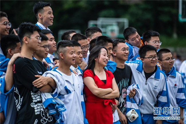6月27日,同學(xué)們和老師合影留念。新華社記者 陶亮 攝