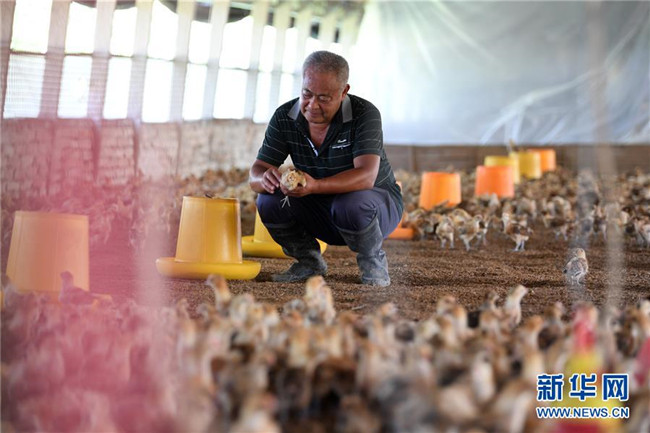 家住安徽省肥西縣花崗鎮(zhèn)楊灣村的黃榮春多年前外出打工時意外受傷,妻子患病失去勞動能力。2014年,黃榮春一家被確定為建檔立卡貧困戶。雖然身體不太好,但是黃榮春頭腦靈活、吃苦能干。在扶貧干部的幫扶下,黃榮春申請到5萬元貼息貸款,發(fā)展白鵝、土雞等家禽養(yǎng)殖。從幾百只到幾萬只,從單一養(yǎng)殖到多元化養(yǎng)殖,他的家禽養(yǎng)殖業(yè)越做越大,2019年,黃榮春靠養(yǎng)雞賺了4萬元。如今,黃榮春已經(jīng)脫貧,成了當(dāng)?shù)赜忻酿B(yǎng)殖能手,并帶動村里有勞動能力的貧困戶發(fā)展特色養(yǎng)殖。