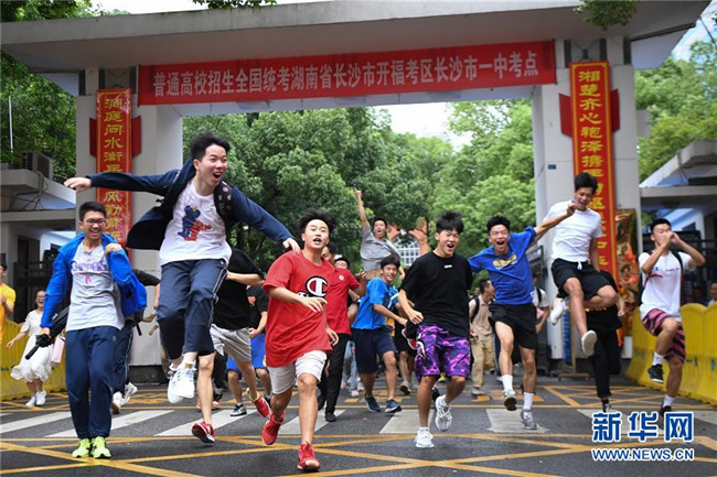 7月8日,考生們在高考結(jié)束后跑出湖南省長沙市一中考點。 當日,全國部分地區(qū)2020年高考結(jié)束。 新華社記者 薛宇舸 攝