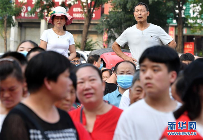 7月8日,在河南省寶豐縣第一高級中學考點,家長在考場外等候考生。 當日,全國部分地區(qū)2020年高考結(jié)束。 新華社記者 李嘉南 攝