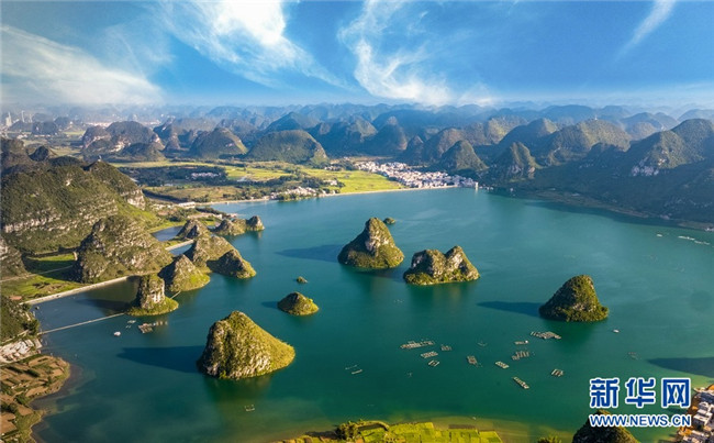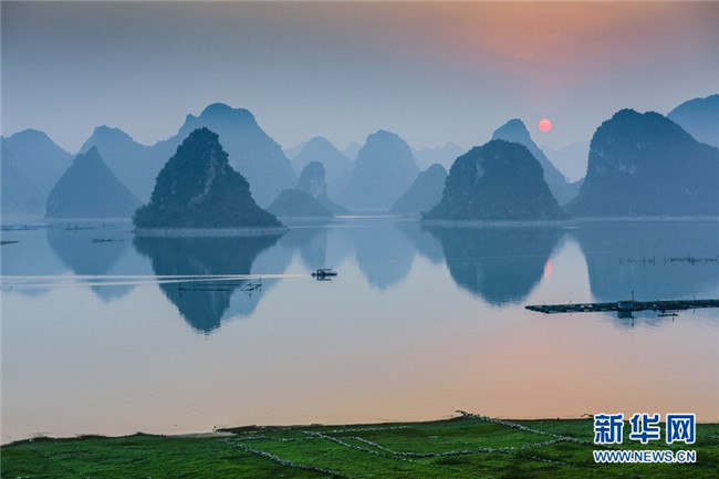 渠洋湖旅游風景區(qū)是一個大型喀斯特湖泊,位于廣西靖西市西北方向,總面積近2500公頃,水面煙波浩渺,湖邊翠竹婆娑,湖中獨峰錯落,仿佛“水上小桂林”。