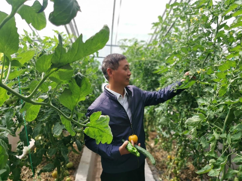 圖為西藏自治區(qū)阿里地委副書(shū)記、行署常務(wù)副專(zhuān)員張小平現(xiàn)場(chǎng)了解大棚果蔬種植情況。