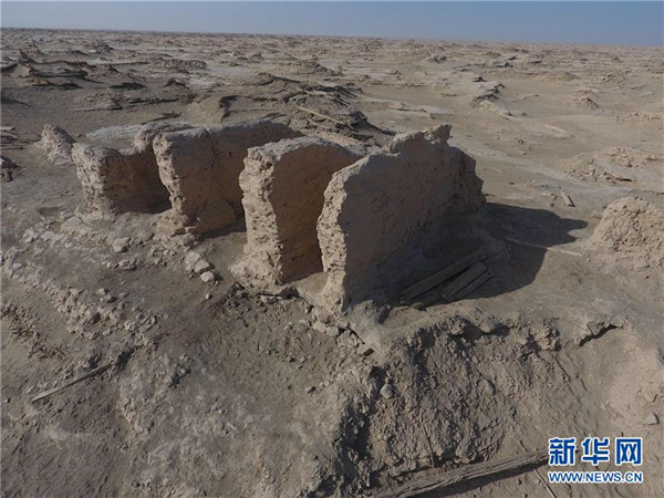 這是樓蘭古城三間房遺址(2019年11月14日攝,無人機(jī)照片)。新華社發(fā)(中鐵西北科學(xué)研究院有限公司提供)