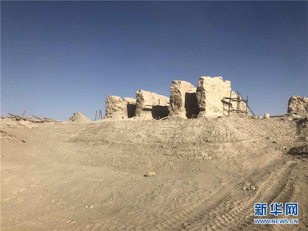 這是樓蘭古城內(nèi)的佛塔遺址(2019年11月11日攝)。新華社發(fā)(中鐵西北科學(xué)研究院有限公司提供)
