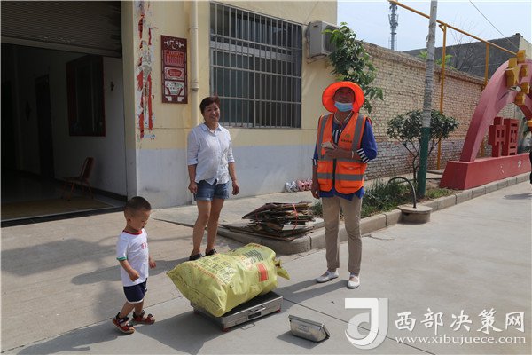 環(huán)衛(wèi)工人吳金玲對可回收利用垃圾進(jìn)行稱重