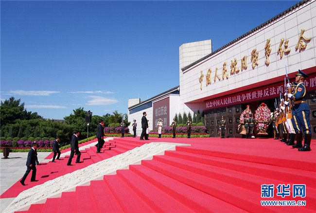 銘記歷史緬懷先烈,珍愛(ài)和平開(kāi)創(chuàng)未來(lái)。9月3日上午,紀(jì)念中國(guó)人民抗日戰(zhàn)爭(zhēng)暨世界反法西斯戰(zhàn)爭(zhēng)勝利75周年向抗戰(zhàn)烈士敬獻(xiàn)花籃儀式在中國(guó)人民抗日戰(zhàn)爭(zhēng)紀(jì)念館舉行。黨和國(guó)家領(lǐng)導(dǎo)人習(xí)近平、李克強(qiáng)、栗戰(zhàn)書(shū)、汪洋、王滬寧、趙樂(lè)際、韓正、王岐山,同各界代表一起出席儀式。