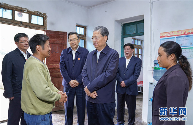 這是9月14日,趙樂(lè)際來(lái)到畢節(jié)市威寧縣格書(shū)村,走訪慰問(wèn)貧困戶。 新華社記者 張領(lǐng) 攝