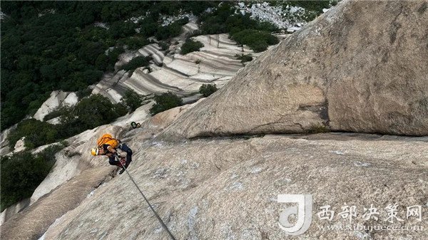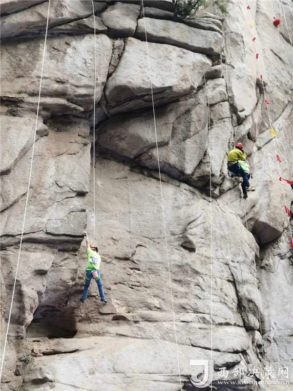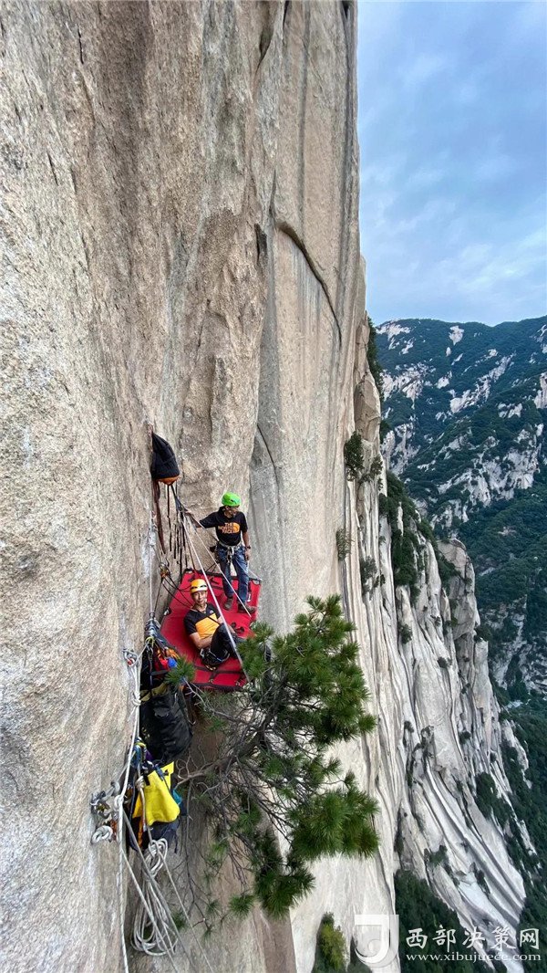 自然巖壁結(jié)組挑戰(zhàn)賽選手成功登頂。挑戰(zhàn)了華山白云峰六百多米的花崗巖大巖壁,并在巖壁上生活了兩天,不僅向大家展示了運動員的專業(yè)攀巖技術(shù),更展示了超強的野外生存能力。