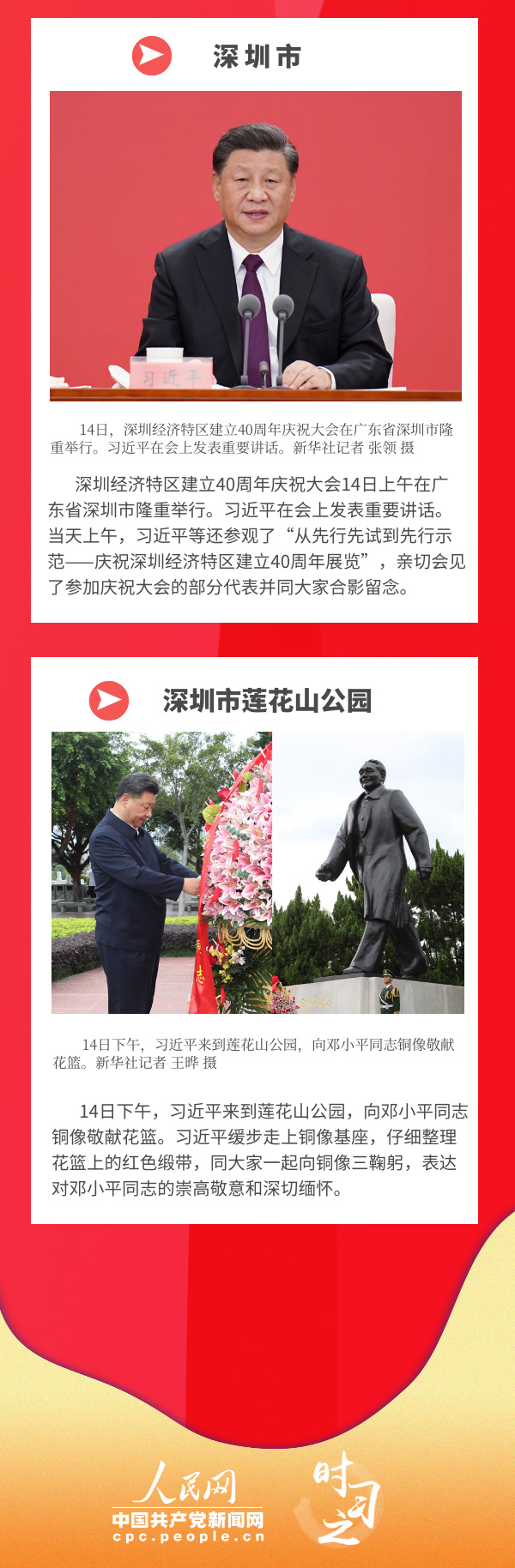 10月12日至13日,中共中央總書記、國家主席、中央軍委主席習近平先后來到廣東潮州、汕頭進行調研。14日,習近平出席深圳經濟特區(qū)建立40周年慶祝大會并發(fā)表重要講話。