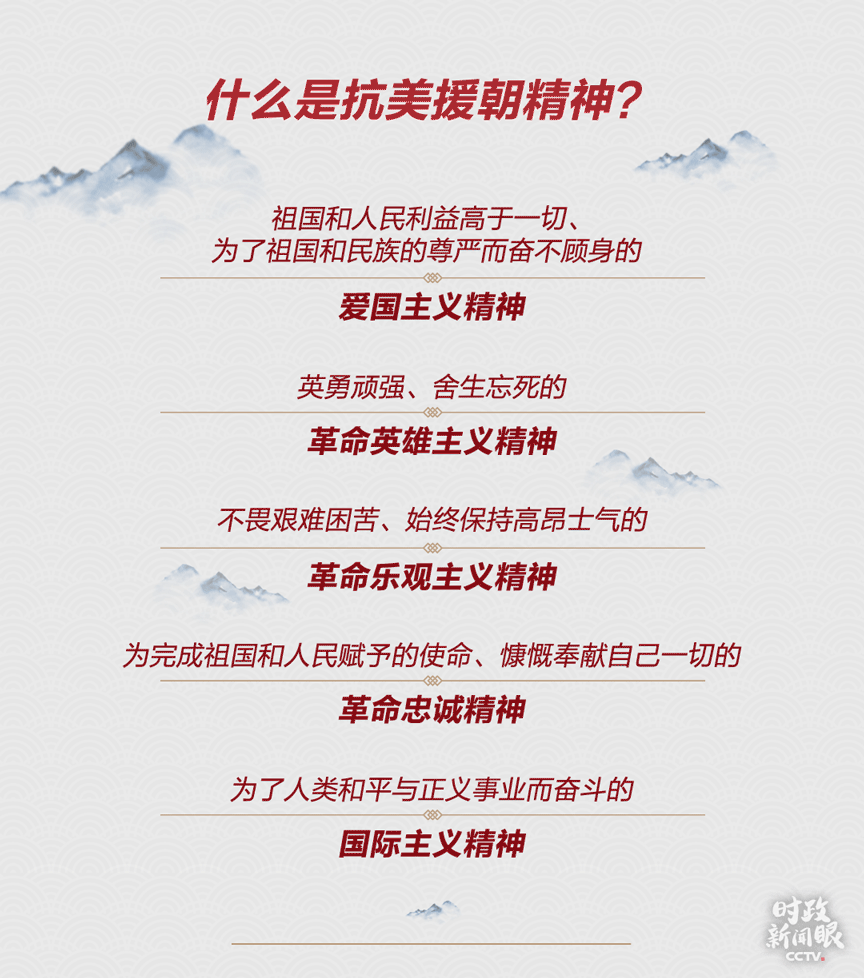 習(xí)近平說,偉大的抗美援朝精神,是中國共產(chǎn)黨人和人民軍隊崇高風(fēng)范的生動寫照,是中華民族傳統(tǒng)美德和民族品格的集中展示,是以愛國主義為核心的民族精神的具體體現(xiàn)。