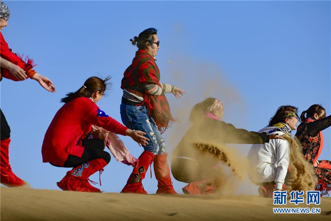 10月21日,游客在阿拉善通湖草原旅游區(qū)沙漠觀光旅游項目中游玩。新華社發(fā)(王正 攝)