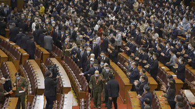 △紀(jì)念大會(huì)結(jié)束后,老英雄們陸續(xù)離場(chǎng)。(總臺(tái)央視記者王威拍攝)