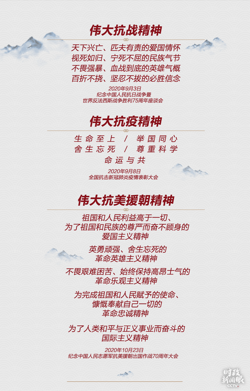 在當(dāng)天的紀(jì)念大會(huì)上,習(xí)近平還深刻闡述了抗美援朝精神。他說:“偉大抗美援朝精神跨越時(shí)空、歷久彌新,必須永續(xù)傳承、世代發(fā)揚(yáng)。”這也是總書記在一個(gè)多月時(shí)間里連續(xù)第三次闡述偉大精神。