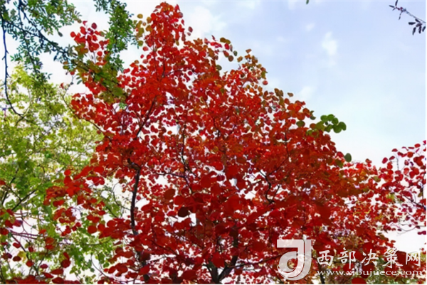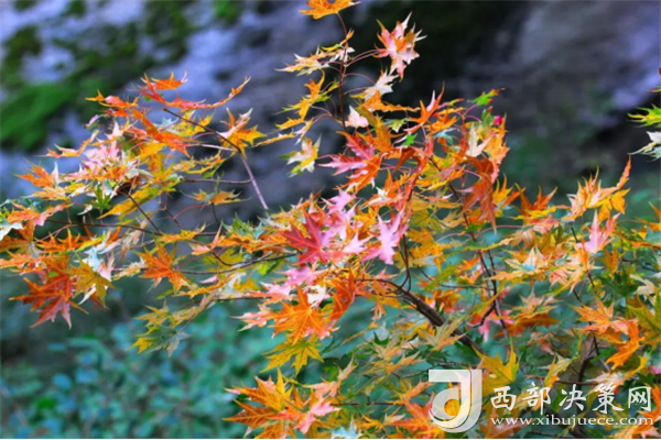 火紅色、金黃色、翠綠色、各種顏色相互映襯