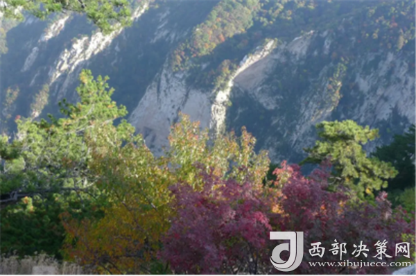 在深秋,翻飛的落葉伴著初雪裝扮著整個華山