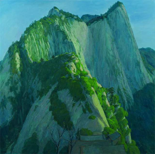 西岳華山,氣象非凡。明代王履在華山作畫,面對華山曾言:“吾師目、目師心、心師華山”。在華山曠野山林的無人之境,田學(xué)森以一顆敬畏自然之心,懷著與先賢和天地精神交流的渴望,感受華山文化的厚重并接受來自華山精神的滋養(yǎng),澄懷觀道,借鑒傳統(tǒng)山水畫的意境,嘗試用西方油畫的材料技法來描繪華山的精魂。