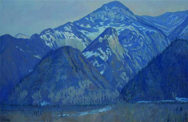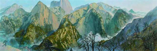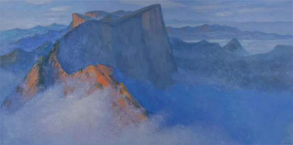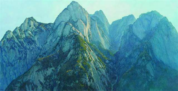 田學(xué)森離開繁華的大都市,懷著一顆敬畏自然,與天地精神交流的向往,感受華山的厚重,殉道般的投入創(chuàng)作。甘于寂寞,獨(dú)處華山十年,借鑒傳統(tǒng)山水畫意境,用油畫材料技法嘗試為千古華岳寫照。