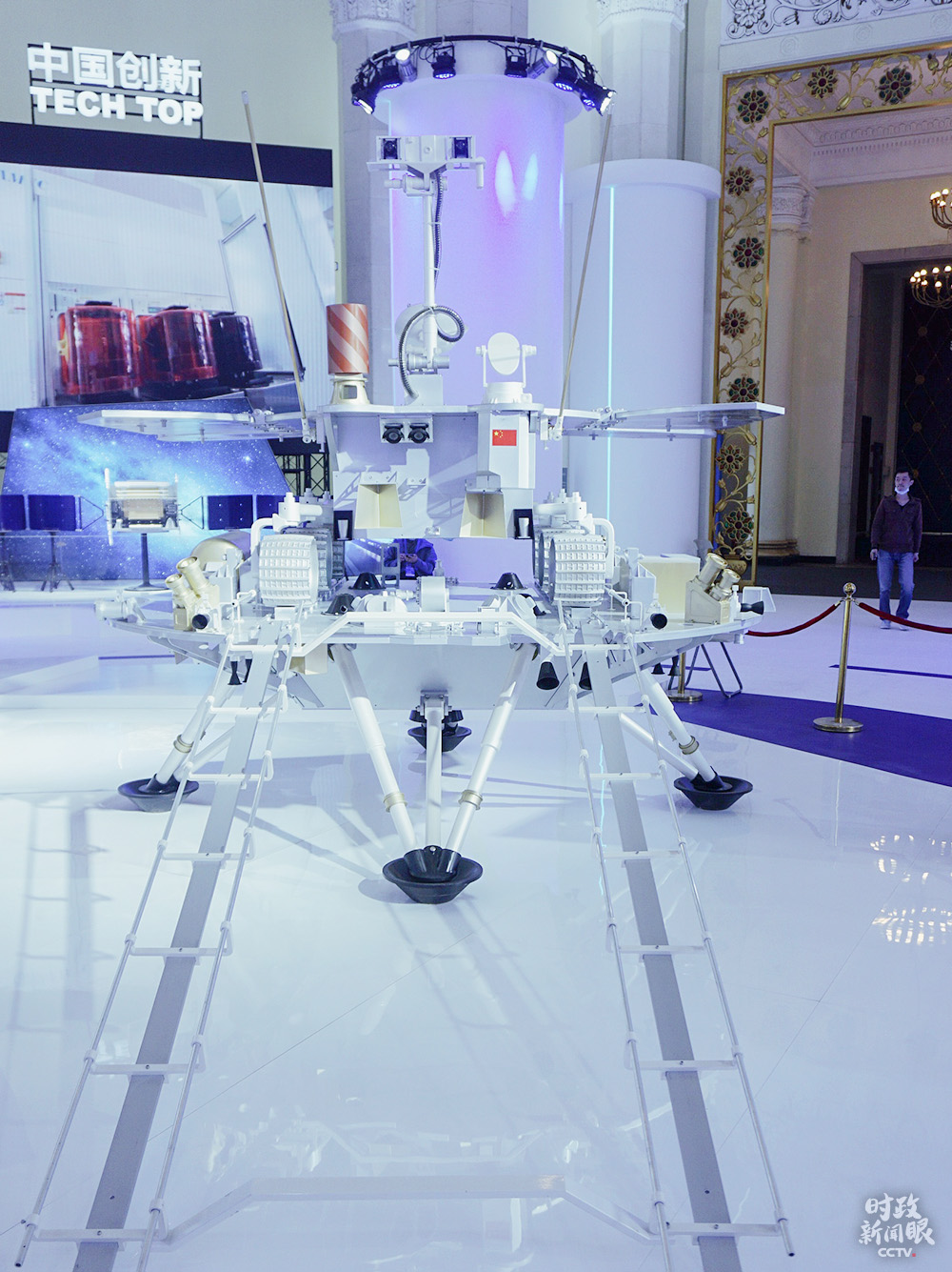 △“天問一號(hào)”巡視器(火星車)等比例模型在中國(guó)上海2020全球技術(shù)轉(zhuǎn)移大會(huì)展出。
