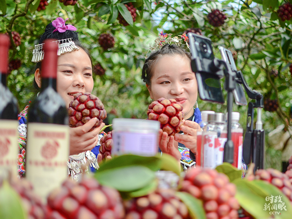 △貴州錦屏縣電商直播帶貨現(xiàn)場(chǎng)。這是當(dāng)?shù)靥厣缯Z叫“布福娜”。