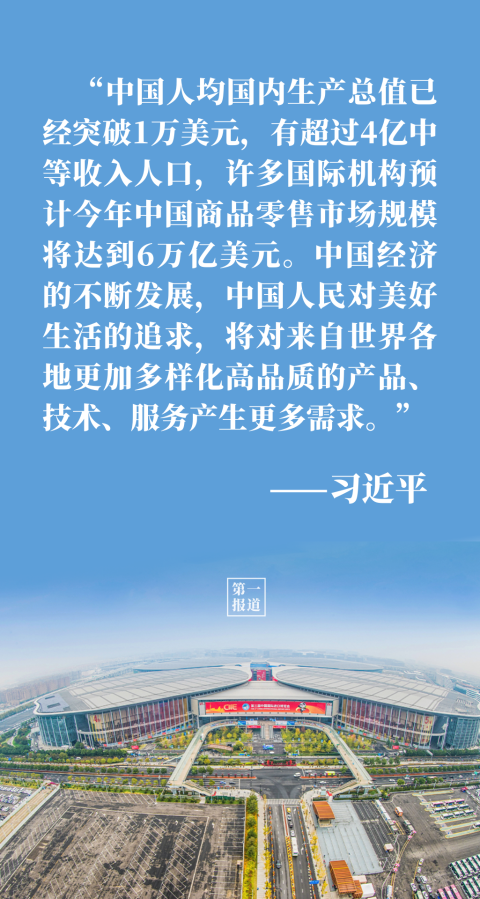“中國的發(fā)展離不開世界,世界的繁榮也需要中國。”談到中國大市場蘊(yùn)藏的大機(jī)遇,習(xí)主席用事實(shí)和數(shù)據(jù)說話:
