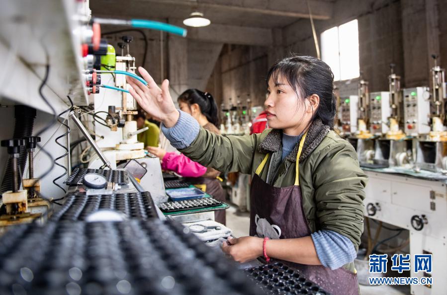 村民在云南省鎮(zhèn)雄縣林口鄉(xiāng)木黑村扶貧車間內(nèi)制作光學(xué)鏡片(11月12日攝)。新華社記者 王冠森 攝