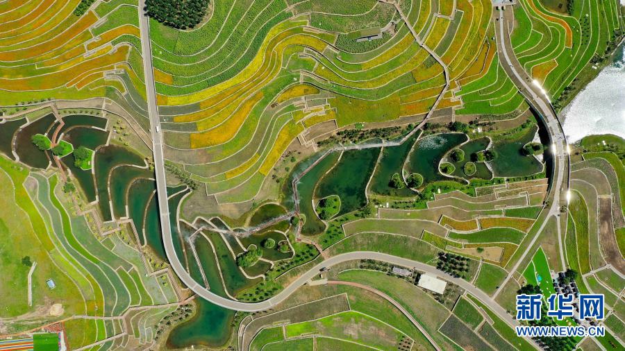 內(nèi)蒙古烏蘭浩特市三合村的稻田(9月5日攝)?!⌒氯A社發(fā)(畢力格 攝)