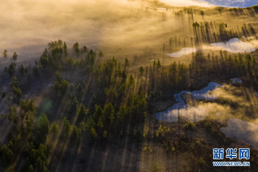 內(nèi)蒙古阿爾山市杜鵑湖畔霧氣繚繞(5月28日攝)。 新華社發(fā)(畢力格 攝)