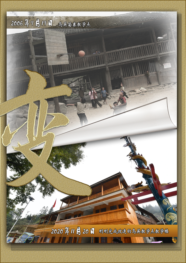 這是一張拼版照片,上圖為:2020年11月20日拍攝的完成改造的烏英教學點教學樓(新華社記者黃孝邦攝);下圖為:2006年9月19日拍攝的烏英教學點(龍濤攝)。新華社發(fā)