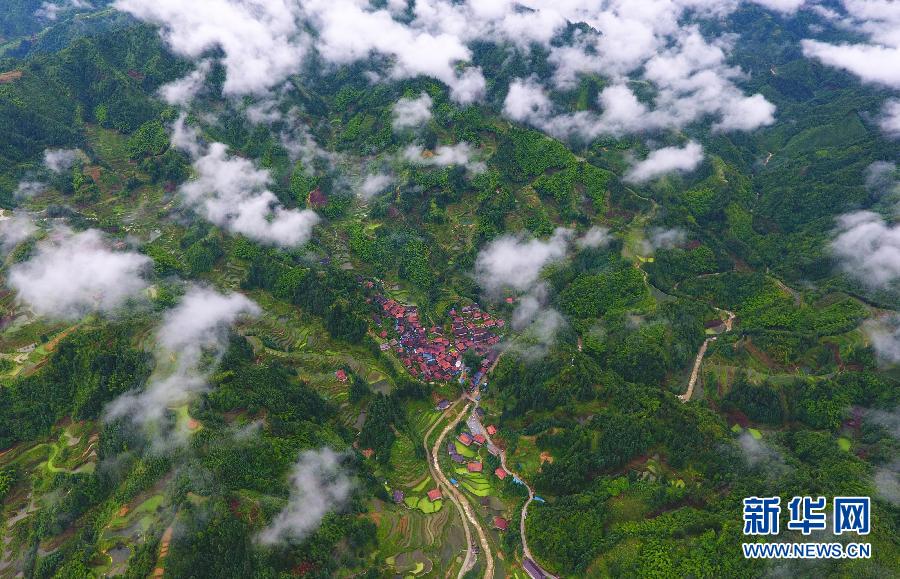 這是烏英苗寨全景(6月7日攝,無人機照片)。新華社記者 黃孝邦 攝