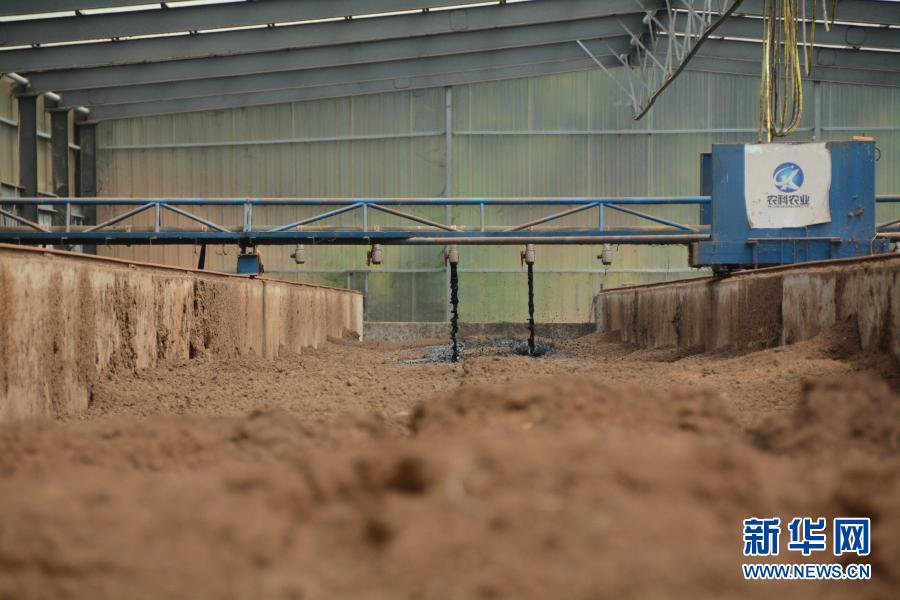 在福建省福清市永誠華多種豬公司豬場內(nèi),半自動化機(jī)械將收集的養(yǎng)殖糞污噴灑至墊料上。這是福建首創(chuàng)的“異位發(fā)酵床”技術(shù),發(fā)酵后的糞污可以作為有機(jī)肥源,并可以讓養(yǎng)殖場實現(xiàn)污染“零排放”(2019年8月12日攝)。新華社記者 林超 攝