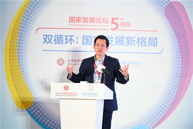 ▲圖為姚洋在北京大學(xué)國家發(fā)展研究院第五屆國家發(fā)展論壇發(fā)表演講。圖片來源:北大國發(fā)院。