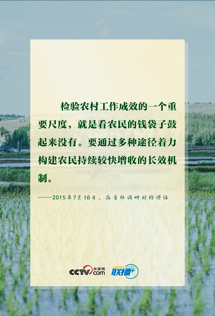 從黃土地走出的習(xí)近平總書(shū)記,對(duì)農(nóng)民有著特殊的情感。無(wú)論是國(guó)內(nèi)考察調(diào)研,還是主持召開(kāi)農(nóng)村改革座談會(huì),總書(shū)記總是想方設(shè)法讓廣大農(nóng)民的錢(qián)袋子鼓起來(lái)。在總書(shū)記心中,檢驗(yàn)農(nóng)村工作成效的一個(gè)重要尺度,就是看農(nóng)民的錢(qián)袋子鼓起來(lái)沒(méi)有。