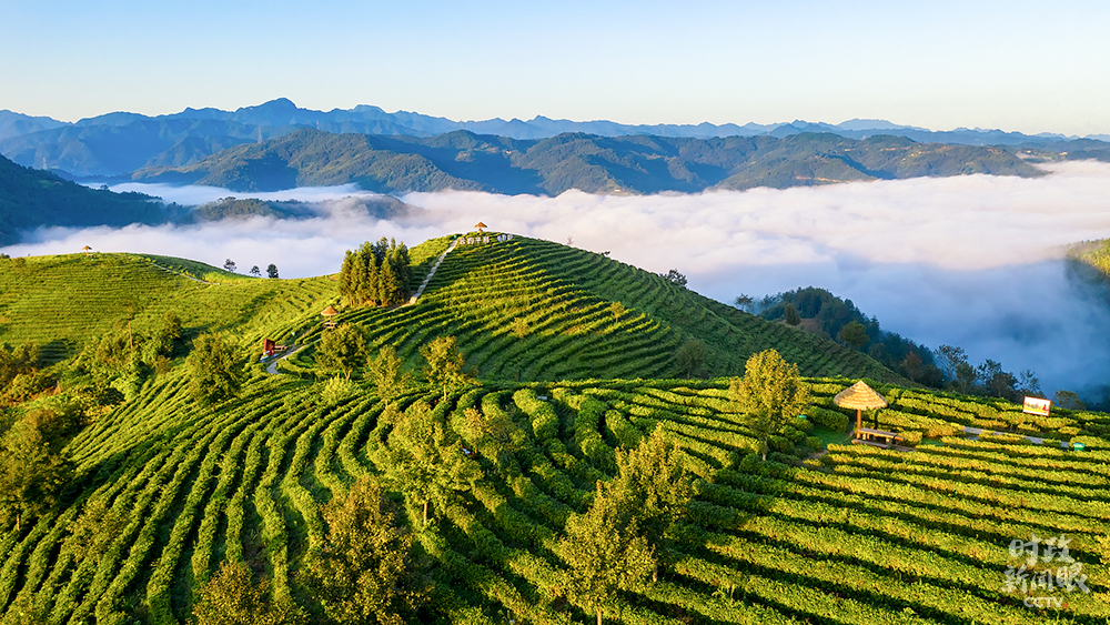 △位于陜西平利縣的蔣家坪茶園,云海環(huán)繞。2020年4月,總書記曾到這里考察,希望當(dāng)?shù)匾虿柚赂?,因茶興業(yè)。