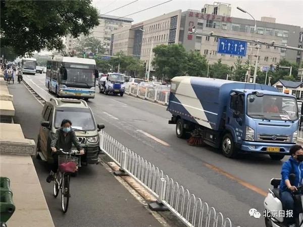 ▲一處非機(jī)動車道上,不時有老年代步車駛過。圖片來源:北京日報