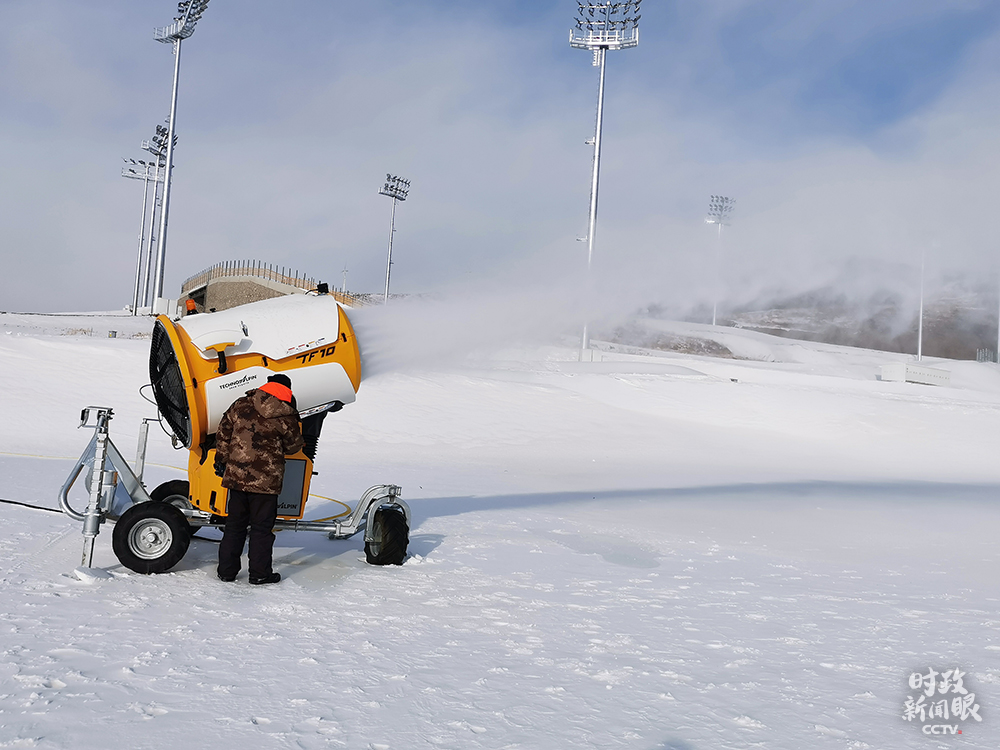 △張家口賽區(qū),國(guó)家冬季兩項(xiàng)中心造雪現(xiàn)場(chǎng)。(總臺(tái)央廣記者劉會(huì)民拍攝)