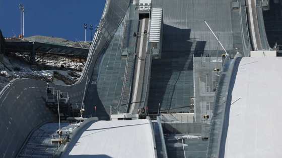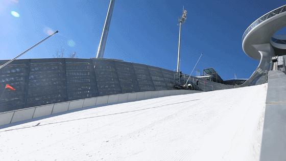 △近距離感受跳臺(tái)滑雪運(yùn)動(dòng)的沖擊力(總臺(tái)央視記者魏子鈞拍攝)