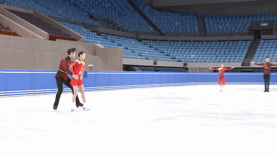 △國(guó)家花樣滑冰隊(duì)雙人滑隊(duì)員彭程/金楊訓(xùn)練現(xiàn)場(chǎng)(總臺(tái)央視記者石偉明拍攝)
