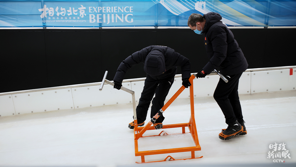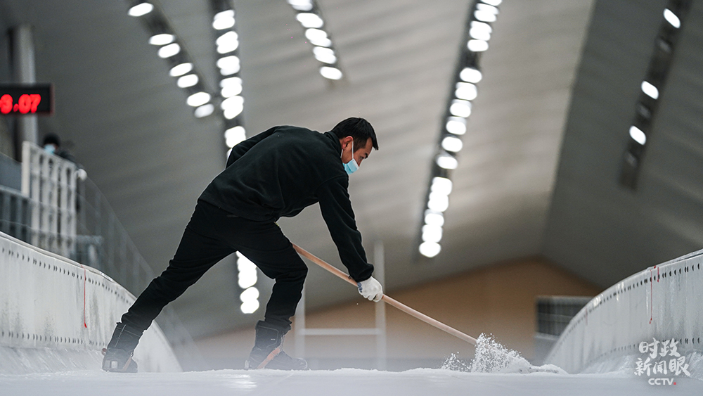 △國(guó)家雪車(chē)雪橇中心,制冰師對(duì)賽道冰面做精細(xì)修整。(總臺(tái)國(guó)廣記者李晉拍攝)