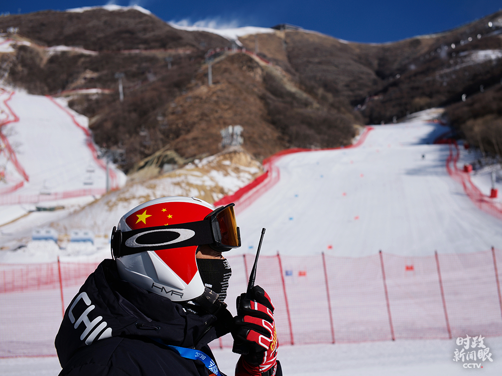 △延慶賽區(qū)高山滑雪中心,為完成賽道造雪任務(wù),山地運(yùn)行團(tuán)隊(duì)前后投入150余臺(tái)造雪機(jī),27臺(tái)壓雪車(chē)24小時(shí)不間斷作業(yè)。這是山地運(yùn)行負(fù)責(zé)人吳高勝在指揮工作。(總臺(tái)央視記者王哈男拍攝)