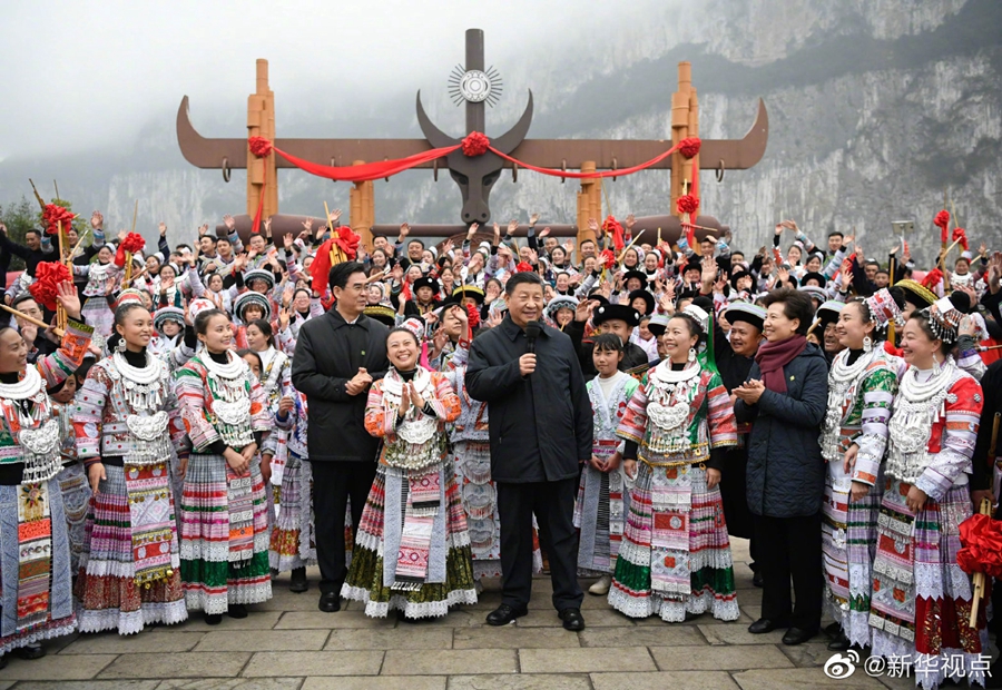 3日下午,正在貴州考察調(diào)研的習(xí)近平總書記,來到畢節(jié)市黔西縣新仁苗族鄉(xiāng)化屋村看望鄉(xiāng)親們,送上新春祝福。在苗族村民趙玉學(xué)家,習(xí)近平同一家人圍坐客廳,邊聊家常邊制作當(dāng)?shù)貍鹘y(tǒng)節(jié)日食品黃粑??倳浻H手用粽葉裹著糯米、黃豆面包好一個(gè)黃粑,微笑著對(duì)趙玉學(xué)一家說:“祝你們今后的日子過得更加幸福、更加甜美!”(文字記者:張曉松 朱基釵;攝影記者:李學(xué)仁 謝環(huán)馳 丁海濤)