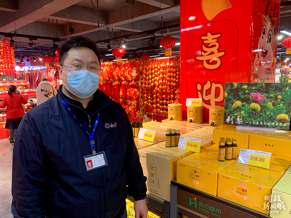 為了滿足消費(fèi)者就地過(guò)年的需求,超市主要增加了本地的特色產(chǎn)品。店長(zhǎng)黃東告訴《時(shí)政新聞眼》,天麻、靈芝、杜仲組成的“貴州三寶”是這些天的熱銷商品。黃東是吉林人,他說(shuō)自己也積極響應(yīng)號(hào)召,今年留在貴州過(guò)年。