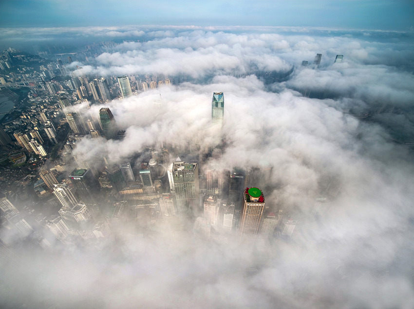 山城重慶被云霧籠罩,美若仙境。王正坤攝